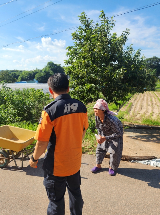 정용인 서장은 무더위가 절정에 이른 오후 시간대에 폭염 취약작업장 및 논밭 일대를 찾아 작업자들에게 충분한 휴식과 수분 섭취를 당부하고, 열사병 등 온열질환 예방을 위한 행동요령을 안내하며 귀가를 권장하고 있다.