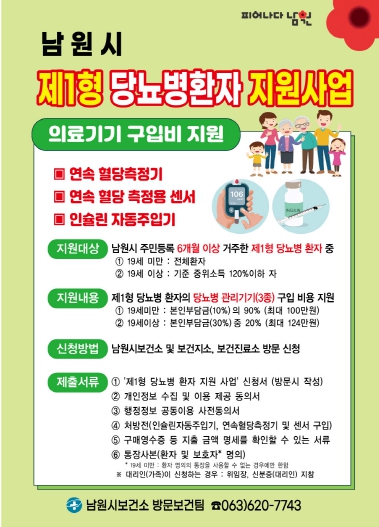 ![]() 남원시,‘제1형 당뇨병환자 지원 사업’실시-포스터 |