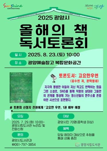 ![]() 광양시, 2025 ‘올해의 책’ 독서토론회 개최 |