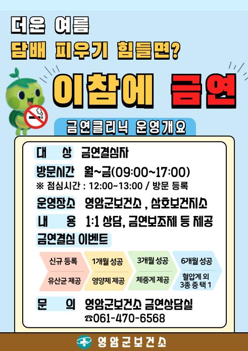 ![]() 영암군보건소, 더운 여름 담배 피우기 힘들면? 이참에 금연 |