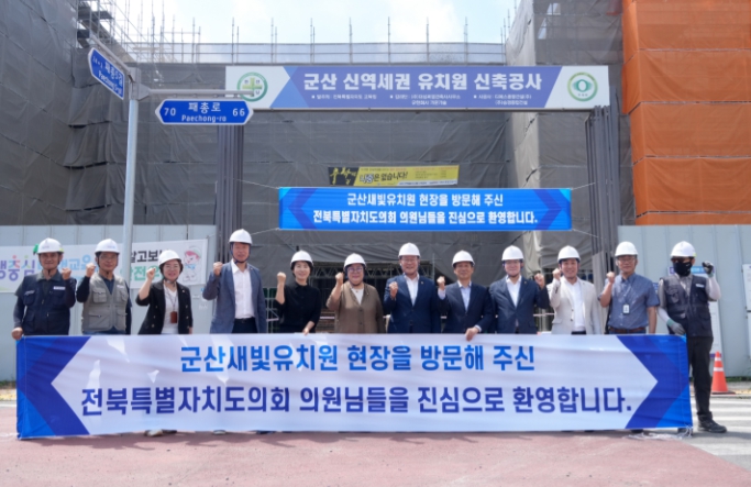 이들은 또 공립 단설 유치원인 군산새빛유치원 신설 공사 현장을 방문해 진행 상황을 확인하고 애로사항을 청취했다, 전북특별자치도 도립학교 설치 조례에 따라 도의회 심의·의결을 거쳐 신설되는 군산새빛유치원은 내년 3월 개원을 목표로 막바지 공사가 한창이다.