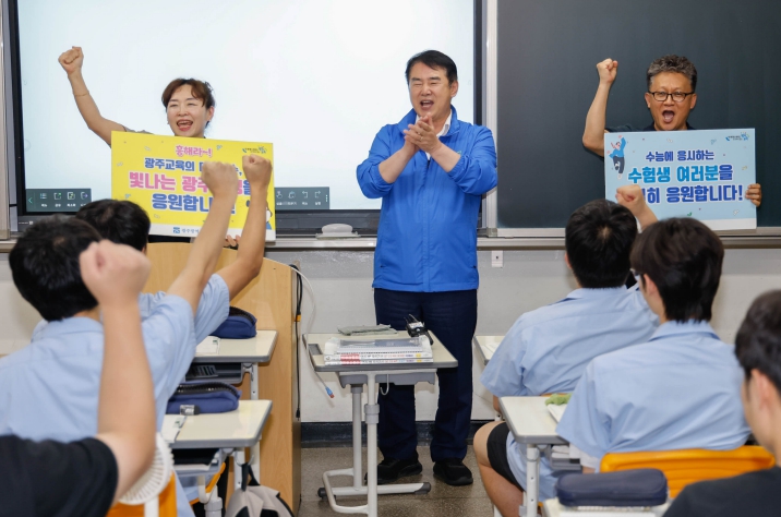 특히 이 교육감은 이날 오후 광주서석고등학교와 광덕고등학교 3학년 교실을 방문해 수험생들에게 응원메시지를 전달했다.