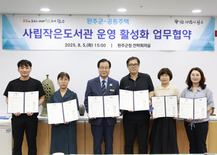 이번 협약을 통해 완주군은 아파트 내 조성된 작은도서관을 중심으로 ▲독서문화프로그램 운영 ▲북큐레이션 서비스 제공 ▲도서관 활성화를 위한 행정적 지원 등을 추진하며, 주민이 일상 속에서 자연스럽게 책을 접할 수 있도록 협력하기로 했다.