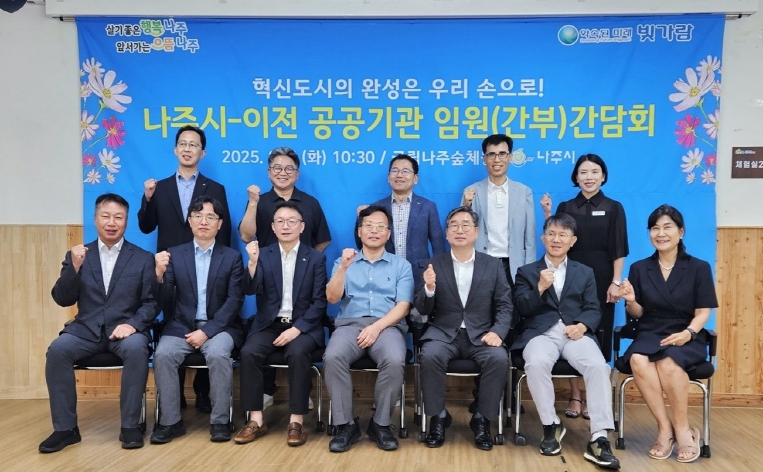 시는 국립나주숲체원에서 ‘나주시-혁신도시 이전공공기관 임원 간담회’를 개최하고 공공기관과의 협업 강화, 지역 주요 시정 공유, 협력사업 추진 방안 등을 논의했다.