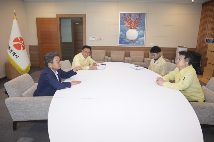 ![]() 강기정 광주광역시장이 지난 7월29일 시청 접견실에서 김용균 행정안전부 안전정책실장과 이선무 중앙합동조사단 광주반장(행안부 농축산해양재난대응과장)을 만나 광주시 피해지역의 신속한 특별재난지역 지정과 국고 지원 필요성을 강조하고 있다./광주광역시 제공 |