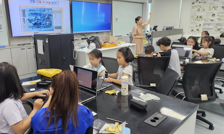 ![]() 창의융합교육원, 과학교육체험관 여름 특별프로그램 운영 - 디지털 현미경으로 지폐를 관찰하는 모습 |