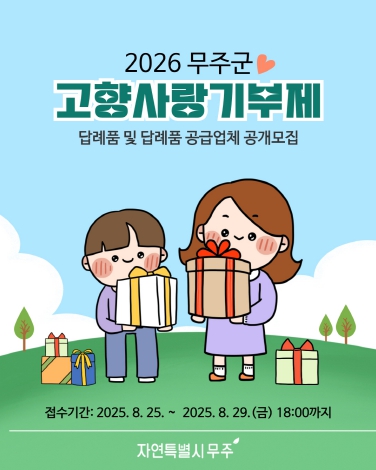 “이번 공개모집이 무주다운 답례품 탄생의 기반이 돼서 고향사랑기부제를 활성화하고 무주발전의 든든한 버팀목이 될 수 있도록 절차 진행에 철저를 기할 것”이라고 밝혔다.
