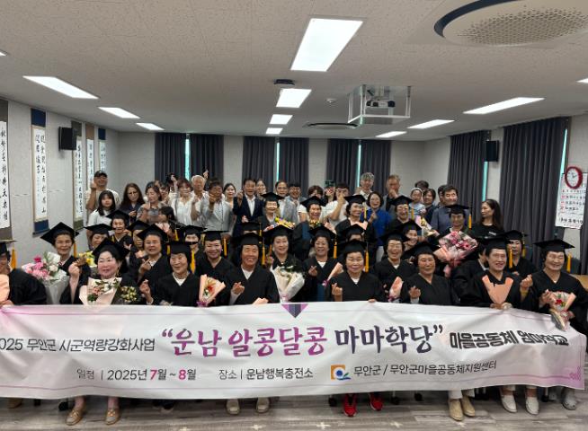 이날 졸업식은 졸업생인 마마학당 학생들 30명과 가족들, 지역주민 등 80여명이 참석한 가운데, 무안군 김병중 부군수를 비롯한 지역 관계자들도 자리해 어머니들의 활동과 배움에 진심 어린 축하를 보냈다.
