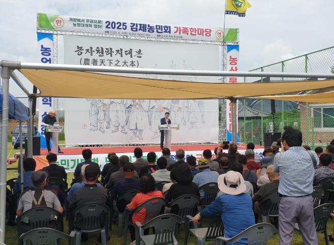 김제시에 따르면 7일 정성주 김제시장, 전국농민회총연맹 하원오 의장 등 내외빈과 회원 등 200여명이 참석한 가운데 김제시 조수골 체험 휴양마을에서 '2025 김제농민회 가족한마당 행사'가 열렸다.
