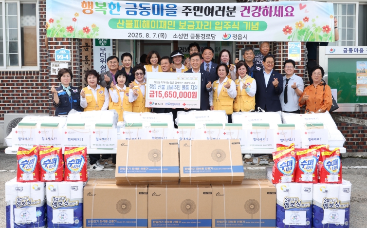 이번 행사는 지난 3월 25일 정읍시 소성면에서 발생한 산불로 주택 13동이 피해를 입고 35명의 이재민이 발생한 가운데, 이 중 전소된 주택 3동의 복구가 완료됨에 따라 마련된 자리다.