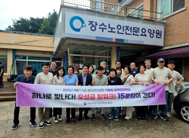 이번 활동은 제8기 5급승진리더과정을 수료 중인 15분임 교육생 21명이 1박 2일 일정으로 장수군을 찾아 교육 과정 중 ‘정책연구 현장학습’의 일환으로 추진됐으며 분임장은 장수군청 최석원 산림과장이 맡았다.