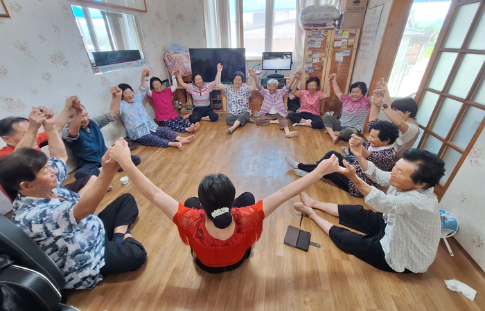 ![]() 주민들이 웃음치료 프로그램에 참여하고 있다 |