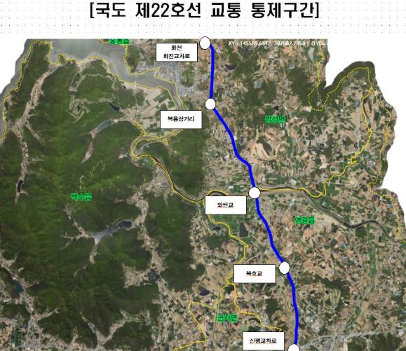 ![]() 국도 제22호선 교통 통제구간. |