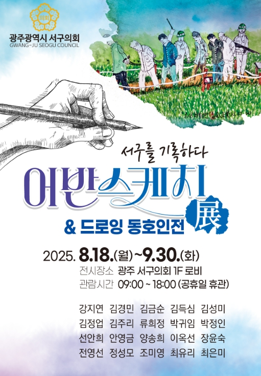 이번 전시는 광주어반스케치·드로잉 동호회 소속 작가 강지연 작가를 비롯한 20명이 참여해 서구의 다양한 풍경과 일상을 스케치와 드로잉으로 담아낸 작품들을 선보인다.