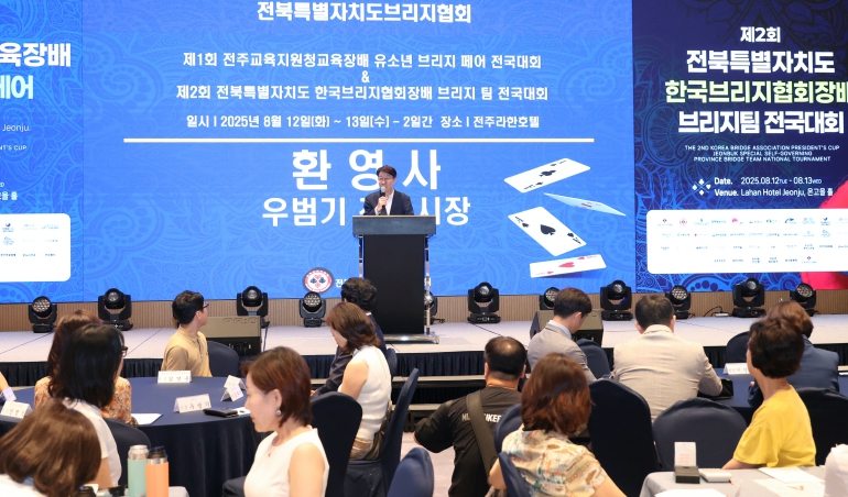 이날 대회에 앞서 진행된 개막식에는 한국브리지협회 김혜영 회장과 우범기 전주시장, 전북특별자치도브리지협회 전성호 회장, 서울특별시브리지협회 오혜민 회장 등이 참석해 자리를 빛냈다.