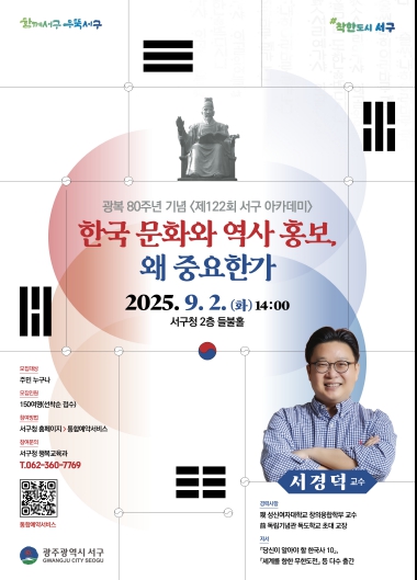 김이강 서구청장은 “광복 80주년을 맞아 우리 문화와 역사에 대한 이해를 넓히고 자긍심을 높이는 뜻깊은 자리를 마련했다”며 “많은 시민이 참여해 함께 배우고 느끼는 시간이 되길 바란다”고 밝혔다.