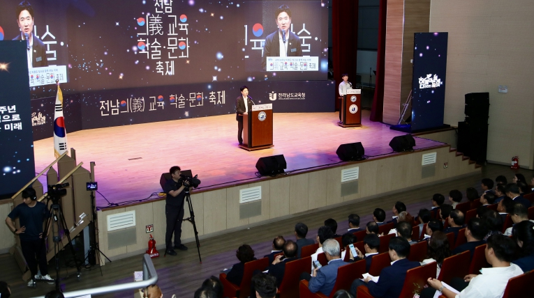 이날 순천만생태문화교육원에서는 광복 80주년을 맞아 전남학생의회가 주도하고, 교육가족들이 함께한 ‘전남 의(義) 교육 학술‧문화 축제’가 성황리에 열렸다. ‘되찾은 빛으로 함께 여는 미래’를 주제로 한 이번 축제는 전남의 의(義) 교육의 과거와 현재, 미래를 톺아보는 배움‧공론‧공유의 장으로 펼쳐졌다.