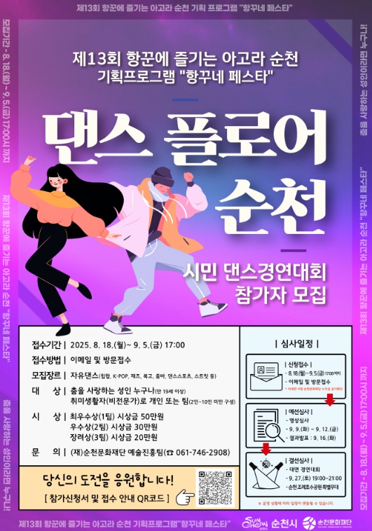 ![]() 시민 댄스경연대회 <댄스플로어 순천> 참가자 모집 |