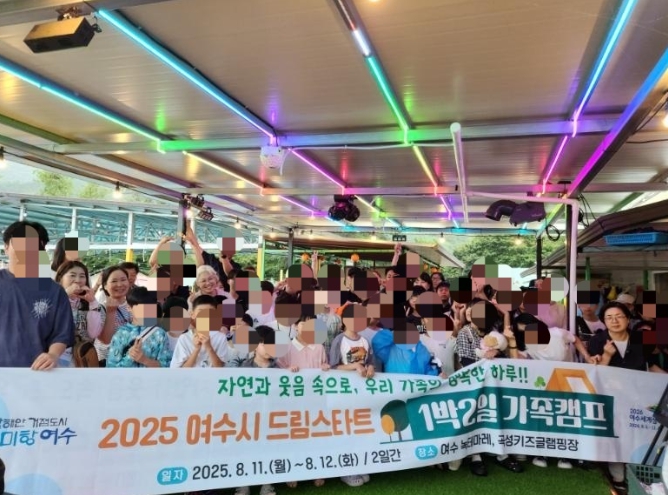 ![]() 여수시 드림스타트는 지난 11~12일 여수 녹테마레와 곡성키즈글램핑장에서 아동과 가족 72명을 대상으로 ‘1박2일 가족캠프’를 운영했다 |