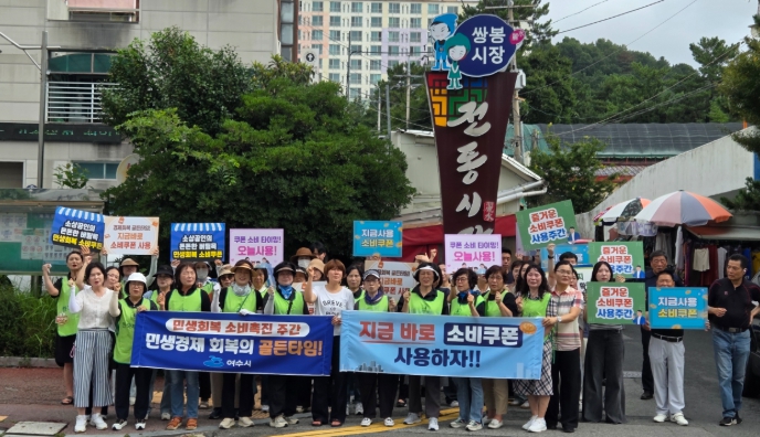 이날 캠페인에는 시 직원과 소상공인연합회, 상인회, 한국부인회 여수지회 회원 등 70여 명이 참여해 쌍봉시장 일대 상점가를 돌며 시민과 상인들을 만나 소비쿠폰 사용을 독려하고 상인들의 애로사항에도 귀 기울이는 시간을 가졌다.