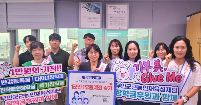 이번 캠페인은 ‘1만원의 기적, 수혜자에서 후원자로 기부의 선순환‘이라는 취지 아래, 부안군 전 군민의 자발적 참여를 통해 지역 미래 인재 양성 기반을 마련하고자 추진 중인 범군민 후원 독려 운동이다.