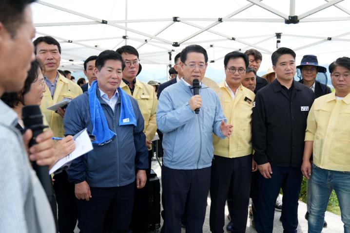 ![]() 김영록 전라남도지사가 14일 조생벼 수확이 한창인 고흥 포두면 들녘을 찾아 관계자로부터 벼 작황과 농가 애로사항을 청취하며 격려하고 있다. |