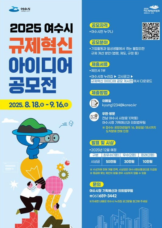 ![]() ‘2025 여수시 규제혁신 아이디어 공모전’ 포스터 |
