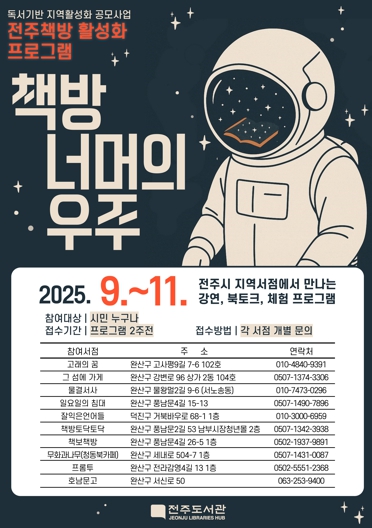 ![]() 전주시, 지역서점과 함께하는 ‘책방 너머의 우주’ |
