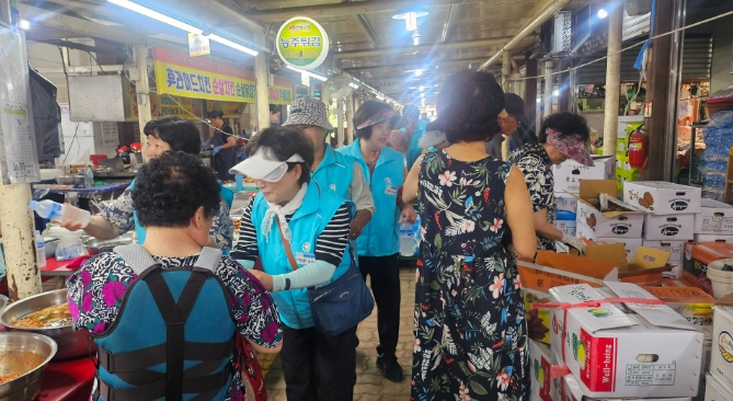 특히 이날 나눔 봉사는 단순한 생수 제공을 넘어 시장을 찾은 어르신들과 상인, 방문객들에게 시원한 생수를 건네며 안부를 묻고, 폭염 대비 건강관리 수칙을 안내했다.