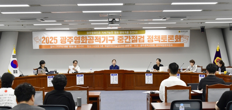 좌장을 맡은 정다은 의원은 “이번 토론회를 통해 광주 영화정책의 현주소를 점검하고 현장의 목소리를 담아낼 수 있었다”며, “지속 가능한 영화생태계 구축과 컨트롤타워 마련, 영화영상 전담기구 설립과 민관 거버넌스 구축은 더 이상 미룰 수 없는 과제”라고 강조했다.