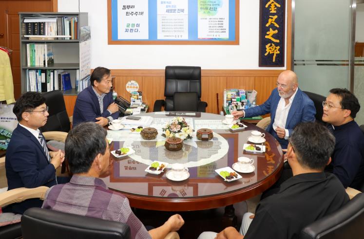 ![]() 진안홍삼, 화장품 산업 확장 가능성 모색(전춘성 진안군수와 움베르토 나르디 박사 등 관계자들 면담) |