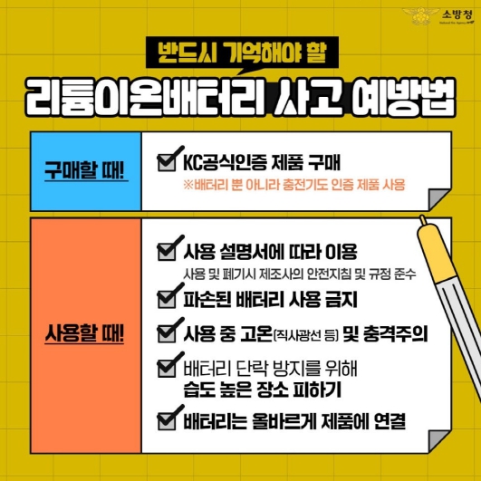김병상 광주소방안전본부 화재예방과장은 “리튬이온 배터리는 생활 속 필수품이지만 작은 부주의가 대형 화재로 이어질 수 있다”며 “시민 모두가 안전수칙을 철저히 지켜 소중한 생명과 재산을 보호해 달라”고 당부했다.