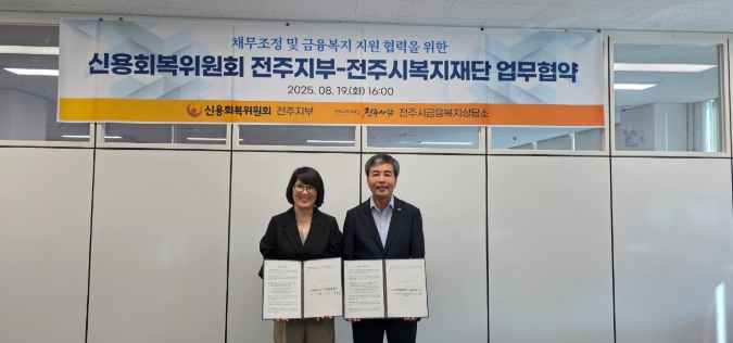 김상초 신용회복위원회 전주지부장은 “이번 협약을 통해 서민의 금융안정 및 통합적인 금융복지서비스 지원 활성화를 통해 금융 취약계층의 경제적 재기에 도움이 되길 바란다”고 밝혔다.
