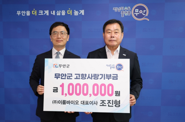 조진형 대표이사는 “재충전을 위해 자주 찾는 무안군에 따뜻한 마음을 전하고자 고향사랑기부에 참여하게 됐다”며, “무안군 발전에 도움이 되길 바란다.”고 전했다.