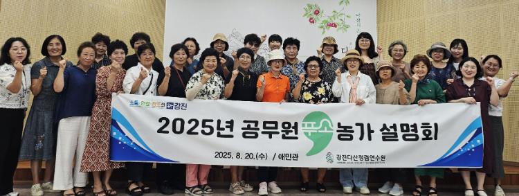 ![]() 지난 20일 2025년 하반기 공무원푸소 운영농가 설명회가 강진 다산청렴연수원 애민관에서 열린 가운데, 다양한 의견을 나누고 공무원 푸소 농가주와 교육홍보팀원들이 자리를 함께 했다. |