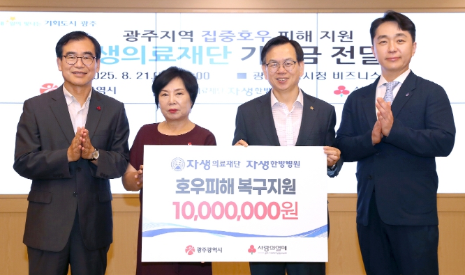 고광완 행정부시장은 “어려운 시기에 지역사회를 위해 성금을 기탁해주신 자생의료재단에 깊이 감사드린다”며 “피해 주민들의 생활 안정과 조속한 일상 복귀를 위해 신속히 전달하겠다”고 말했다.