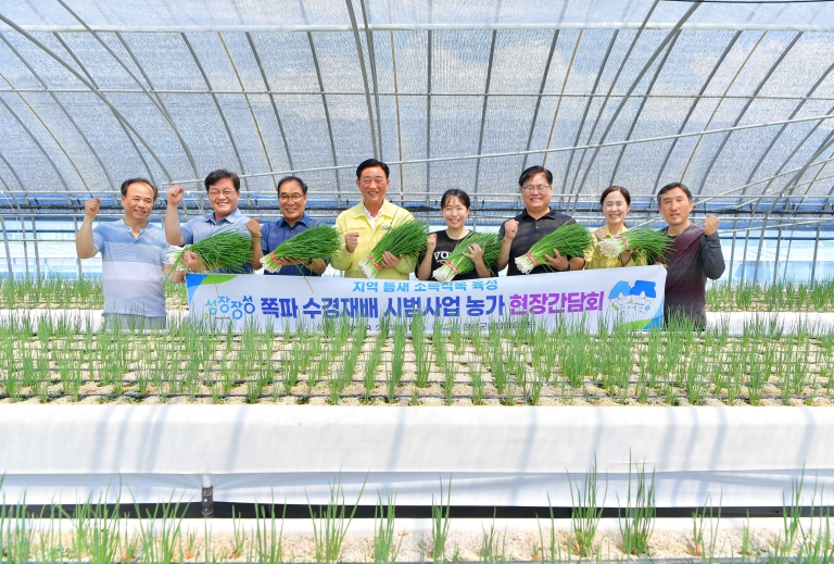 이번 간담회는 장성군이 자체사업으로 추진한 쪽파 수경재배 시범사업의 성과를 공유하고, 농가 애로사항을 청취하기 위해 마련됐다. 시범농가와 지역 농업인, 김한종 장성군수, 장성군농업기술센터 관계자 등 20여 명이 모여 쪽파 수경재배, 농업기술 보급 방향 등에 대해 자유롭게 의견을 나눴다.