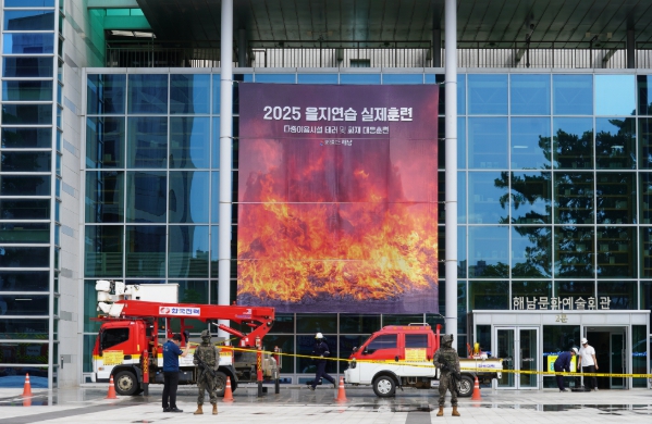 21일에는 6개 기관 100여명이 참여한 다중이용시설 테러 대응 및 화재 진압훈련을 실시했다. 훈련은 적 드론 공격에 따른 폭발 화재, 인명구조 및 화재진압, 시설 복구 순으로 진행했다.