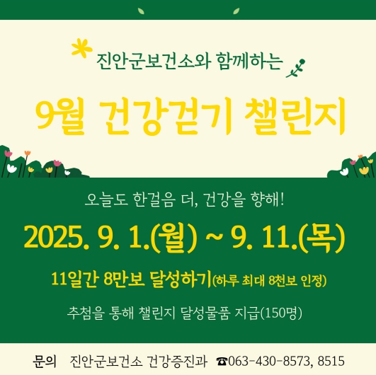 ![]() 진안군, 9월 워크온 건강걷기 챌린지 운영 |