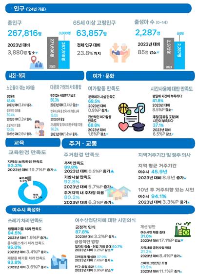시민들은 주거, 교육, 안전 등 생활 밀착형 분야에 높은 관심을 보였으며 이번 조사 결과는 여수시민이 체감하는 사회 문제와 현안에 대한 인식 변화를 반영하는 주요 지표로 활용될 예정이다.