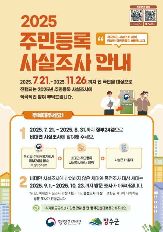 ![]() 장수군, ‘2025년 주민등록 사실조사’ 실시 |