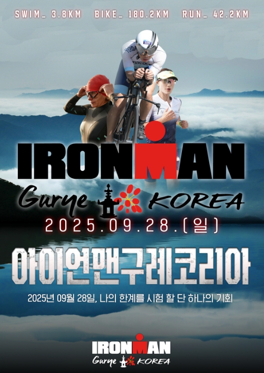 대한철인3종협회에서 주최·주관하는 2025 아이언맨 구례 코리아 대회는 국내외 철인3종경기 선수들이 참가하는 국제 대회로, 본경기는 9월 28일에 진행한다.