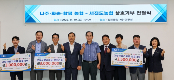 나주 영산포농협과 화순 이양청풍농협은 각각 300만 원을 서진도 농협과 상호 기부하고, 함평 손불농협은 250만 원을 서진도 농협과 상호 기부해 지역 간의 교류와 협력의 발판을 마련했다.