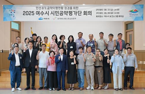![]() 지난 8월 22일 보건소 회의실에서 민선 8기 공약 이행 현황을 점검하기 위한 ‘2025 여수시 시민공약평가단 2차 회의’를 개최했다. |
