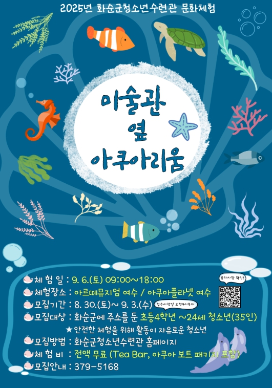 이번 체험은 9월 6일 여수 아르떼뮤지엄과 아쿠아플라넷에서 진행되며, 청소년 35명을 선착순으로 선발한다.