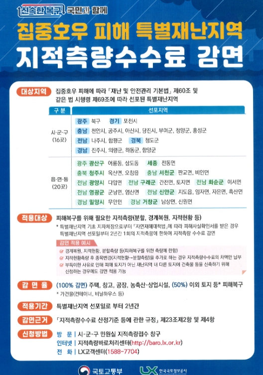 김희선 광양시 민원지적과장은 “이번 지적측량 수수료 감면이 집중호우로 큰 피해를 입은 주민들의 경제적 부담을 덜고, 하루빨리 일상을 회복하는 데 실질적인 도움이 되길 바란다”고 말했다.