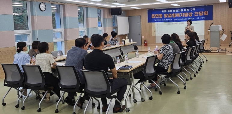 나주시는 26일 나주시가족센터 다목적강당에서 20개 읍면동 맞춤형복지팀장이 참석한 가운데 의료, 돌봄 통합지원사업 안내와 읍면동에 설치될 통합지원창구의 역할, 서비스 추진체계 전반에 대해 논의하는 간담회를 개최했다고 밝혔다.
