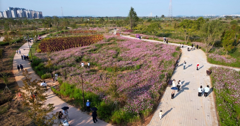 ![]() 나주시가 오는 9월 9일 영산강 정원 시민설명회를 개최한다. 사진은 영산강 정원 코스모스 & 댑싸리 꽃단지 |