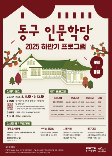 하반기 프로그램 참여비는 무료이며, 참여를 원하는 주민은 오는 9월12일까지 동구 온라인기록관 누리집을 통해 신청하면 된다. 선착순으로 모집이며 기타 자세한 사항은 인문도시정책과 인문도시기획팀으로 문의하면 된다.