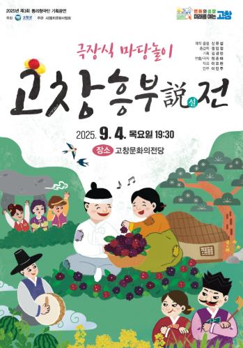 ![]() 고창군, 9월4일 고창문화의전당 마당놀이 ‘고창 흥부설(說)전’ 공연 |